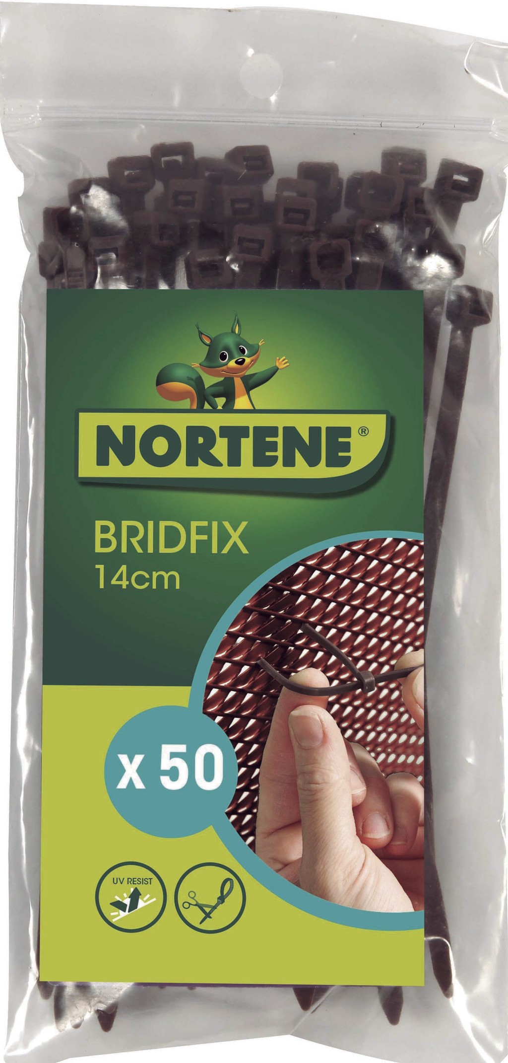 Colliers de fixation 4,6 mm x 14 cm BRIDFIX marron Nortene est conçu pour une utilisation intérieure et extérieure. Il est robuste, facile à poser et offre une finition élégante.