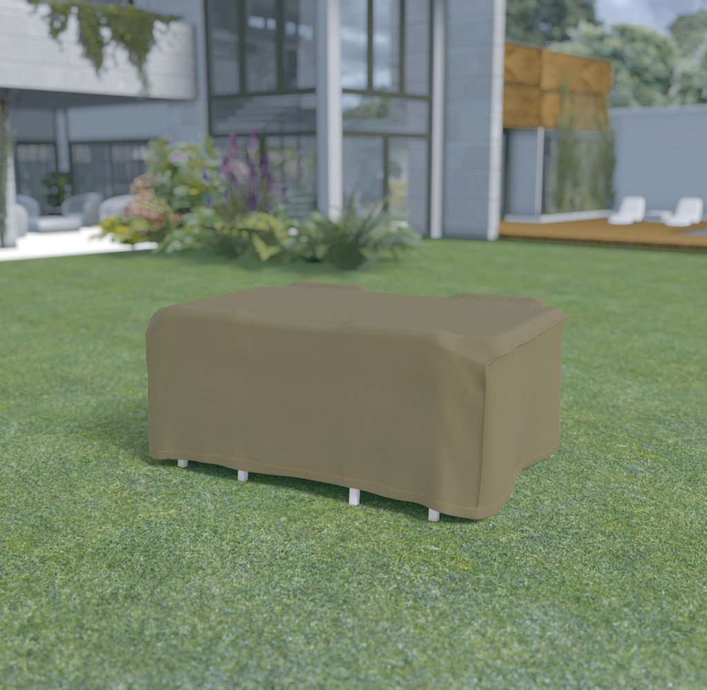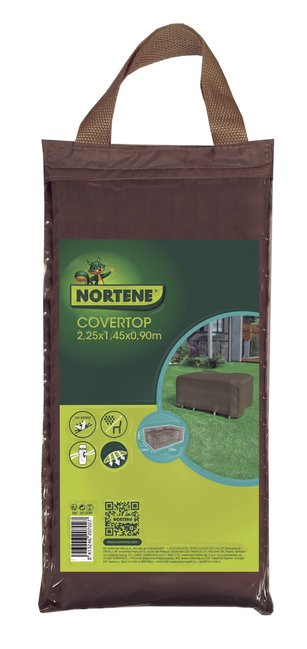 CARACTÉRISTIQUES DIMENSIONS : 225 x 145 x h. 90 cm Matériau : polyester 210D/polyuréthane. Couleur : vison/taupe.