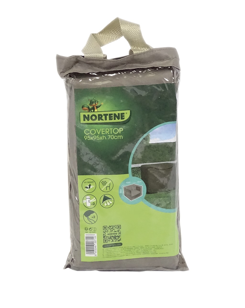 Dimensions : 95 x 95 x h.70 cm Matériau : polyester recouvert de polyuréthane. Avec protection UV et double couture. Imperméables. - Poids : 90 g/m2. - Couleur : vison/taupe.