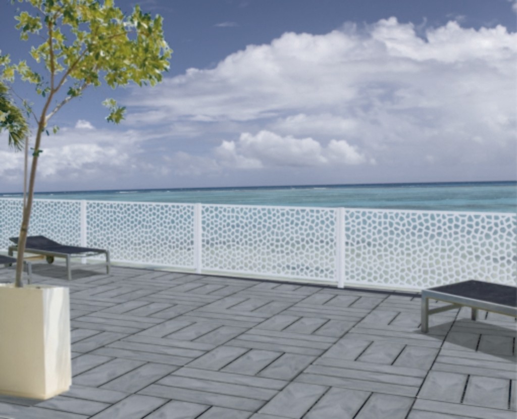 Panneau décoratif Mosaïc Blanc. Dimensions 1 x 2 m Fabriqués en polypropylène. - Épaisseur : 5 mm - Avec traitement anti-UV. - Fabriqués avec un copolymère de grande qualité. * Les panneaux peuvent subir une légère dilatation ou contraction avec les changements de température. Il est donc important de suivre les instructions de montage (voir la vidéo) pour maintenir les bonnes distances. Imputrescible et n'a pas besoin de peinture. Il est très résistant et garanti à long terme contre les intempéries. Attention : Ce produit ne contient pas les accessoires recommandés pour le montage. Consulter la fiche technique.